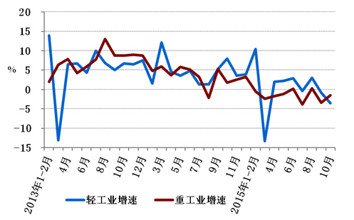 图2: 2013年以来分月轻、重工业用电量增速情况