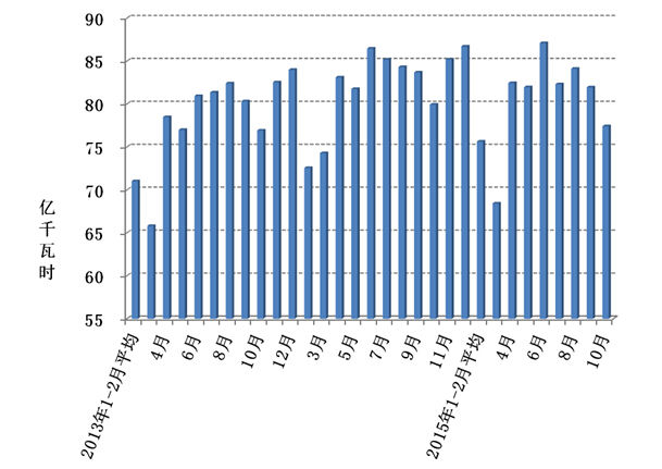 分类型看,1-10月份,全国水电设备平均利用小时2989小时,同比降低114小时;水电装机容量超过1000万千瓦的7个省份中,四川、青海、云南、湖北和湖南同比分别下降331小时、254小时、230小时、184小时和105小时;贵州和广西同比分别提高351小时和381小时。全国火电设备平均利用小时3563小时,同比下降304小时,降幅比2014年同期扩大68小时;海南利用小时数超过4500小时;四川、云南和西藏火电设备利用小时低于2500小时,分别为2269小时、1296小时和63小时;与上年同期相比,共有27个省份火电利用小时同比下降,较上月增加2个省份(其中,云南下降超过900小时)。全国风电设备平均利用小时1473小时,同比下降33小时。