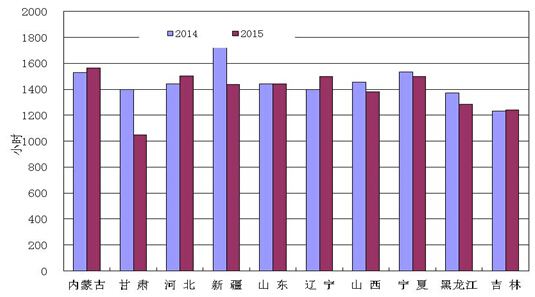 图6:1-10月份风电装机较多省份风电设备利用小时