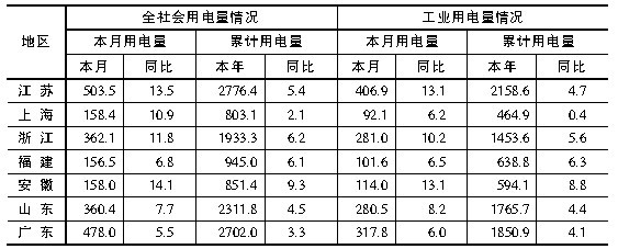 表4:1~7月份周边省市用电量情况 单位:亿千瓦时,%
