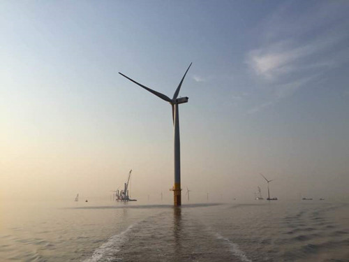 2015年以来,公司积极抢抓政策机遇,大力开拓海上风电项目。经过科学组织决策,充分利用海上风电具有不占用土地资源、风资源持续稳定、发电效率高等优势,组建海上风电公司,负责国家电投集团海上风电开发建设先行先试的光荣使命。项目开工仅历时556天首台机组即并网发电,实现了国家电投海上风电零的突破,也实现了江苏公司新能源产业开发建设的新突破。