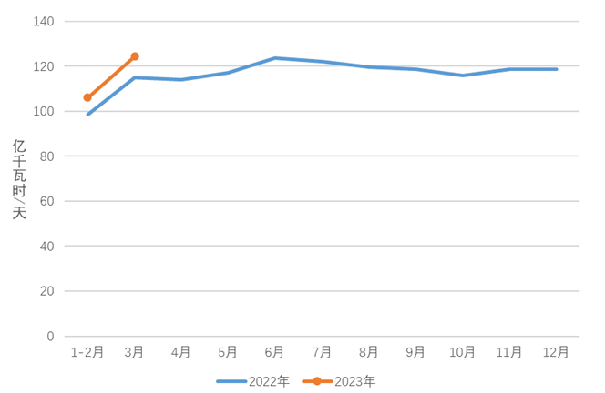 图3 2022、2023年分月制造业日均用电量