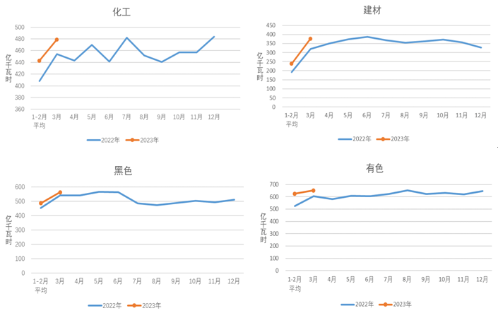 图4 2022、2023年重点行业分月用电量情况