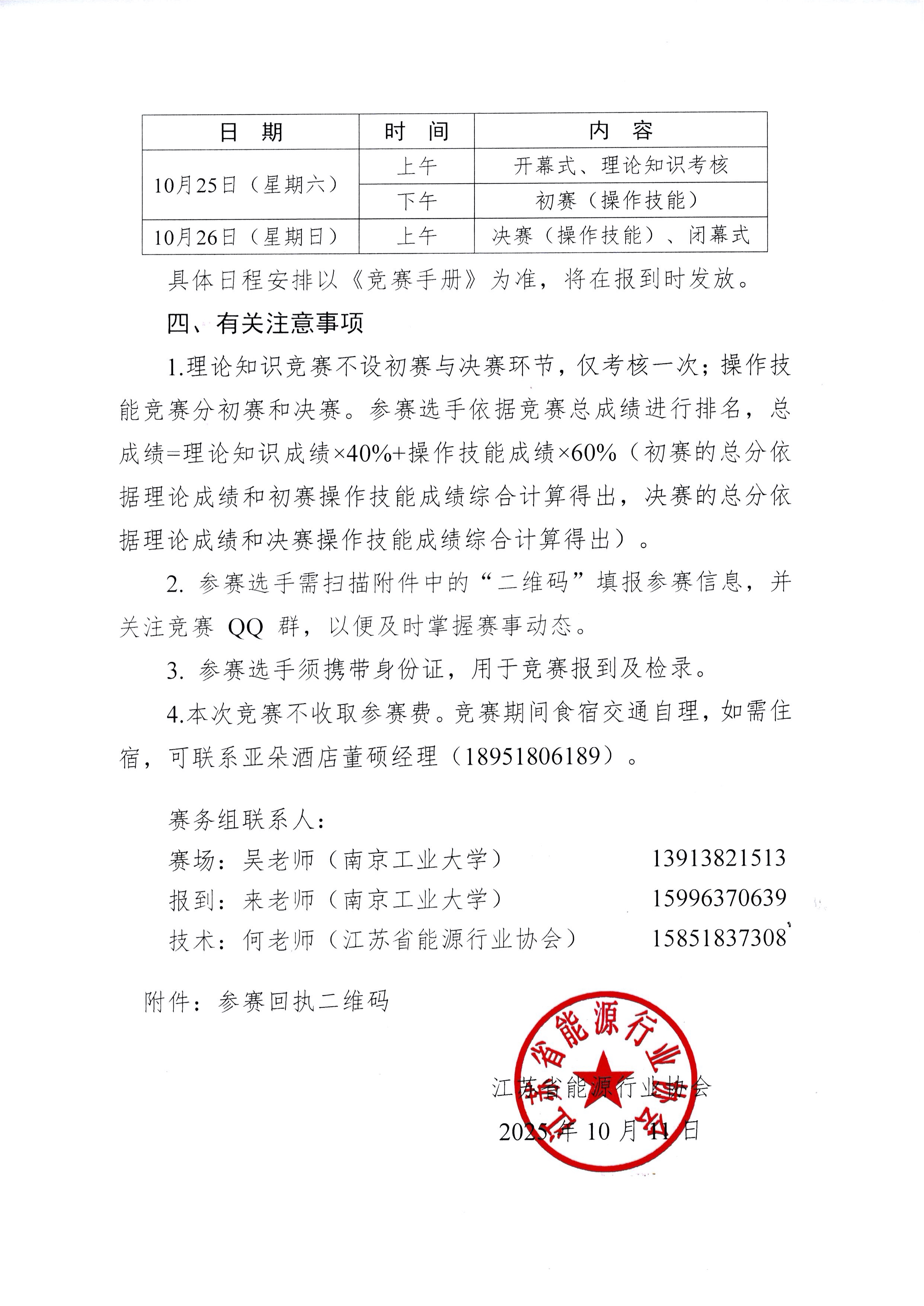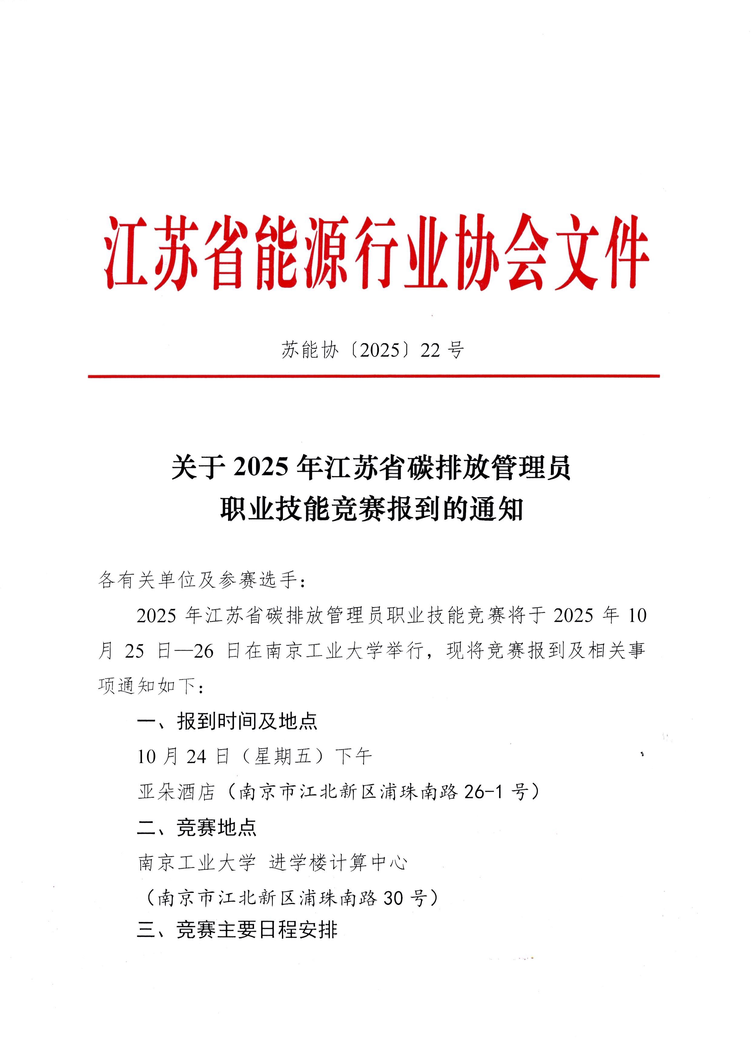 2025年江苏省碳排放管理员职业技能竞赛将于2025年10月25日—26日在南京工业大学举行,现将竞赛报到及相关事项通知如下: