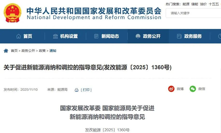 11月10日,国家发改委、国家能源局发布《关于促进新能源消纳和调控的指导意见》(以下简称《指导意见》)。