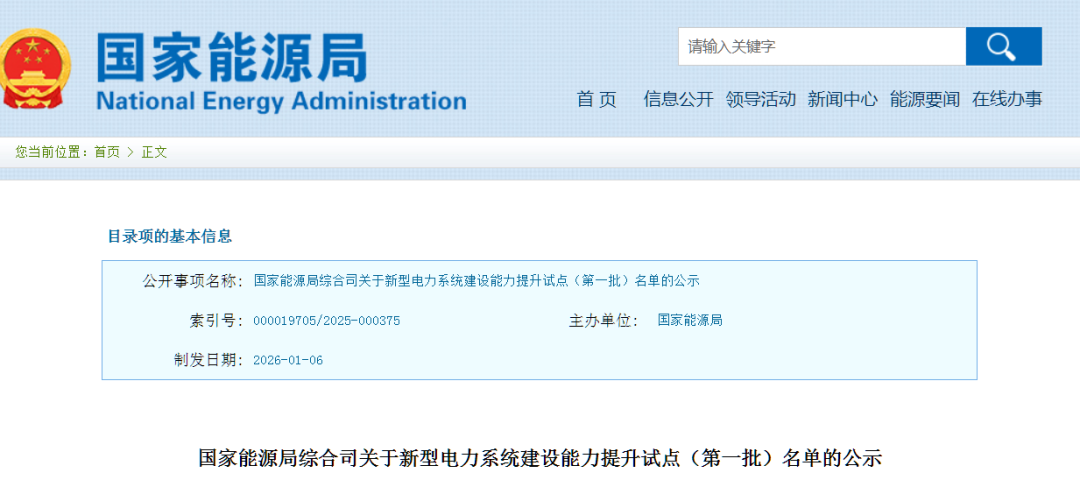 国家能源局综合司关于新型电力系统建设能力提升试点(第一批)名单的公示