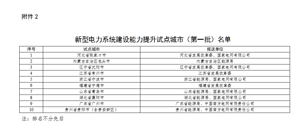 2.新型电力系统建设能力提升试点城市(第一批)名单
