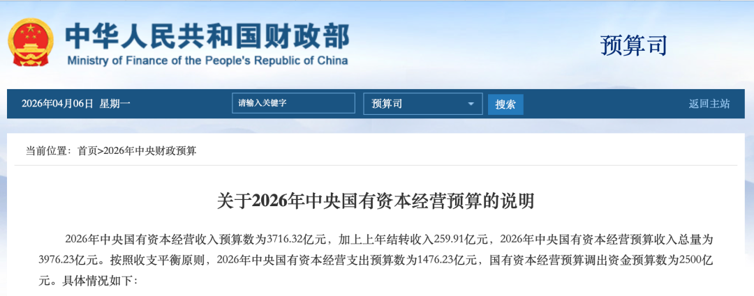 近日,财政部发布《2026年中央财政预算》及配套文件《关于2026年中央国有资本经营预算的说明》(以下简称“《2026预算说明》”),公布了中央国有全资企业(非金融)税后利润上缴比例。其中明确,烟草企业和石油石化、电力、电信、煤炭等资源型企业,收取比例35%,2026年上交收入2700.6亿元,下降5.4%。