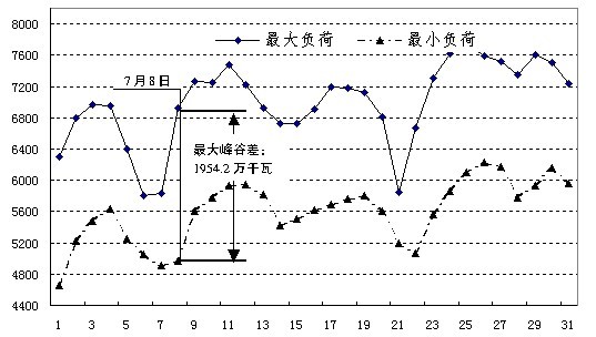 图3:7月份全省日最大、最小用电负荷走势