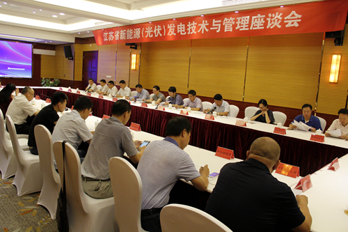 7月13日,省能源行业协会在淮安召开江苏省新能源(光伏)发电技术与管理座谈会。协会会长李玉琦,省能源局新能源处主任科员王益品,金湖县副县长黄永清出席会议。会议由协会秘书长吴伯春主持。协鑫新能源控股有限公司副总裁张宁勇等20多家光伏发电企业、相关装备制造企业的负责同志参加了此次会议。