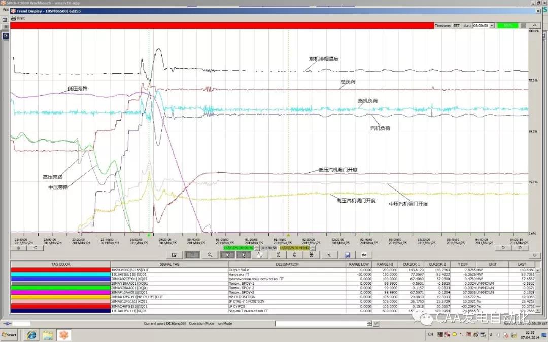 3)启动至全速、并网阶段:9:41启动条件满足,#11机开始启动,9:56#11机点火,10:04机组全速,10:08#11机并网。启动至全速阶段历时大约25分钟,运行主要进行机组热通道的清吹、点火、升速至全速,此阶段为程序控制,运行亦无干预手段。