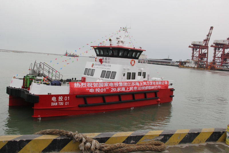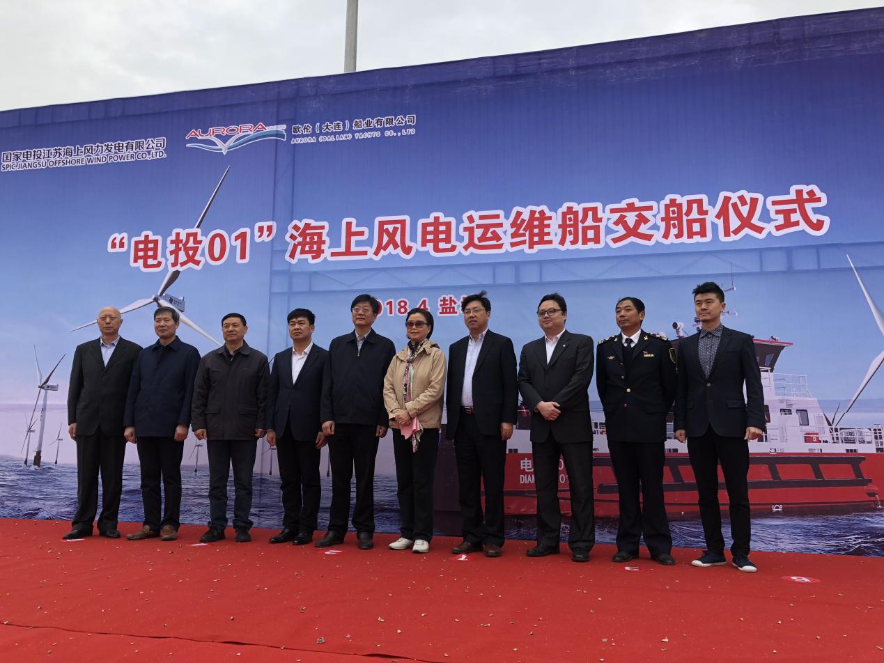 海上风电的运维一直是大家关注的焦点,而运维人的交通更是重要的工具,课题组成员共同见证我国第一艘具有世界先进水平的海上风电运维船交付仪式,该船的交付将填补我国海上风电机组专业运维特种船舶的空缺。