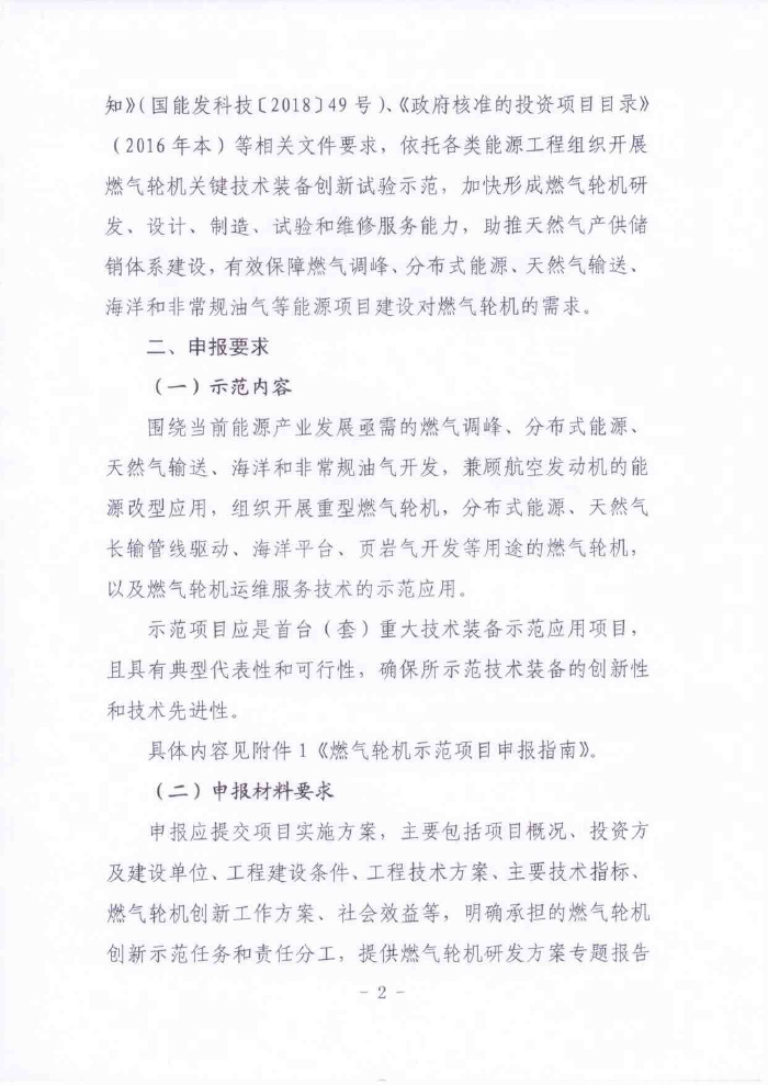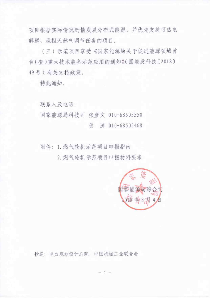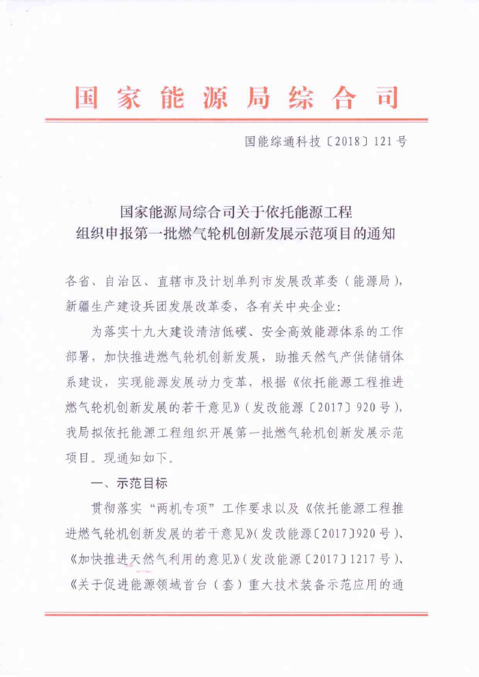 国家能源局综合司关于依托能源工程组织申报第一批燃气轮机创新发展示范项目的通知