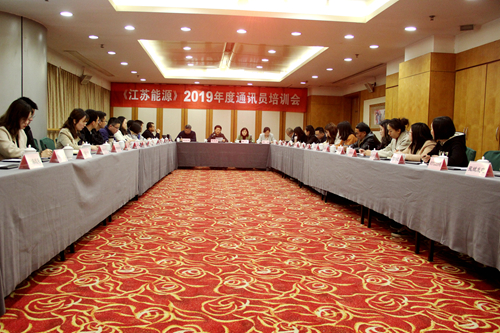 为加强协会通讯员队伍建设及宣传《江苏能源》,4月2日,《江苏能源》编辑部在南京举办2019年度部分会员单位通讯员培训会。协会副秘书长、《江苏能源》主编张玉萍主持会议并讲话,副秘书长崔国华出席会议并就加强协会网站建设提出意见,副主编李想作2018年杂志工作通报。省广电总台融媒体新闻中心副主任黄娴应邀授课。国家能源集团江苏公司、华能江苏分公司、大唐江苏发电有限公司、徐矿集团、常州天合光能等30余家理事及以上部分会员单位通讯员参加了本次培训会。