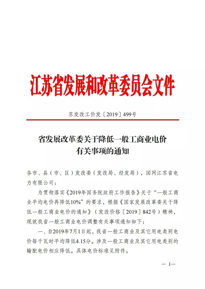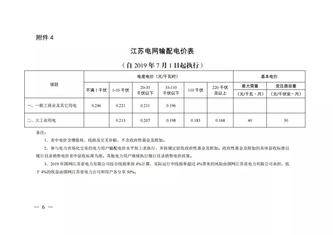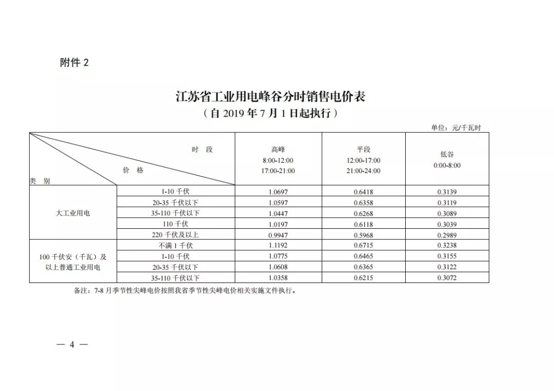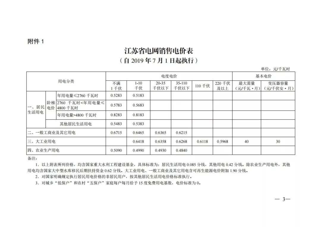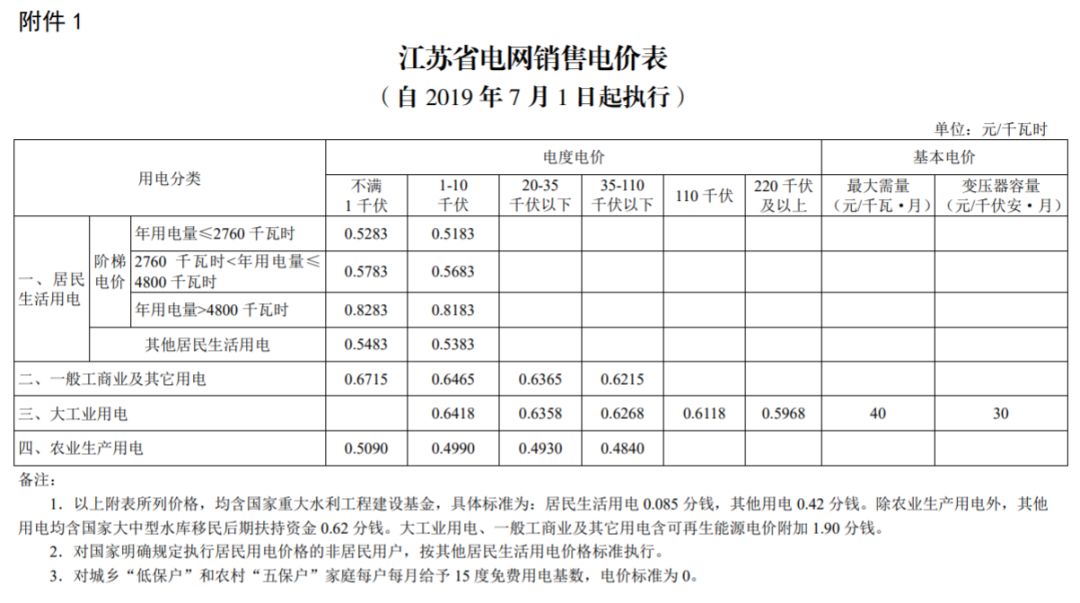 (以下附上7月1日起执行的江苏省电网销售电价表)