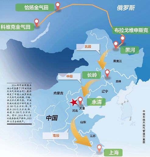 作为我国天然气进口战略通道之一,中俄东线目标市场为我国东北、环渤海、长三角地区,包括黑龙江、吉林、辽宁、河北、北京、天津、山东、江苏、上海、浙江10个省市。管道建成后将对目标市场有何影响?项目折射出俄罗斯怎样的大国战略?