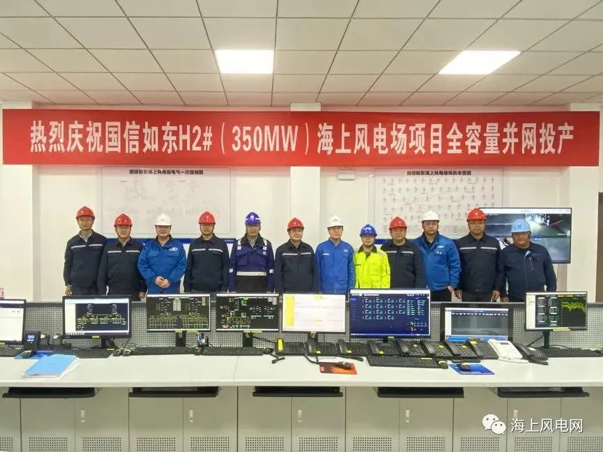 2021年12月1日20时28分,随着最后一台18#风机启机指令的成功执行,国信如东H2#海上风电场项目全部机组顺利实现并网发电。至此,项目提前一个月实现全容量投产发电,圆满完成了工程建设目标。