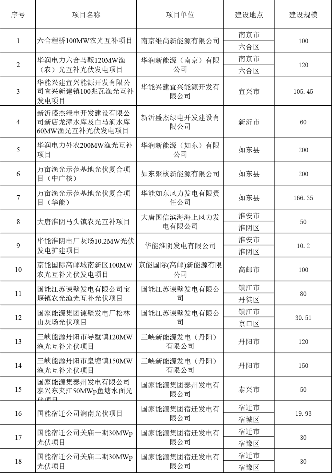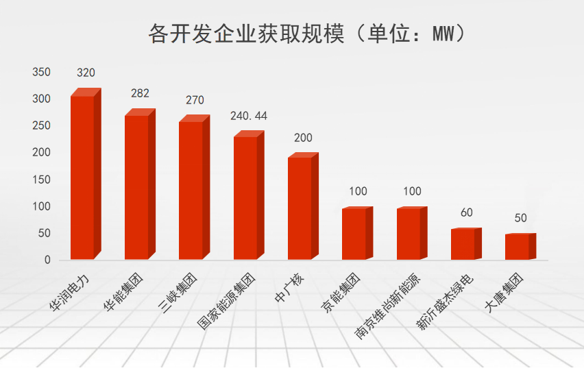 开发企业分别有华润电力、华能集团、三峡集团、国家能源集团、中广核、京能集团、南京维尚新能源、新沂盛杰绿电、大唐集团。