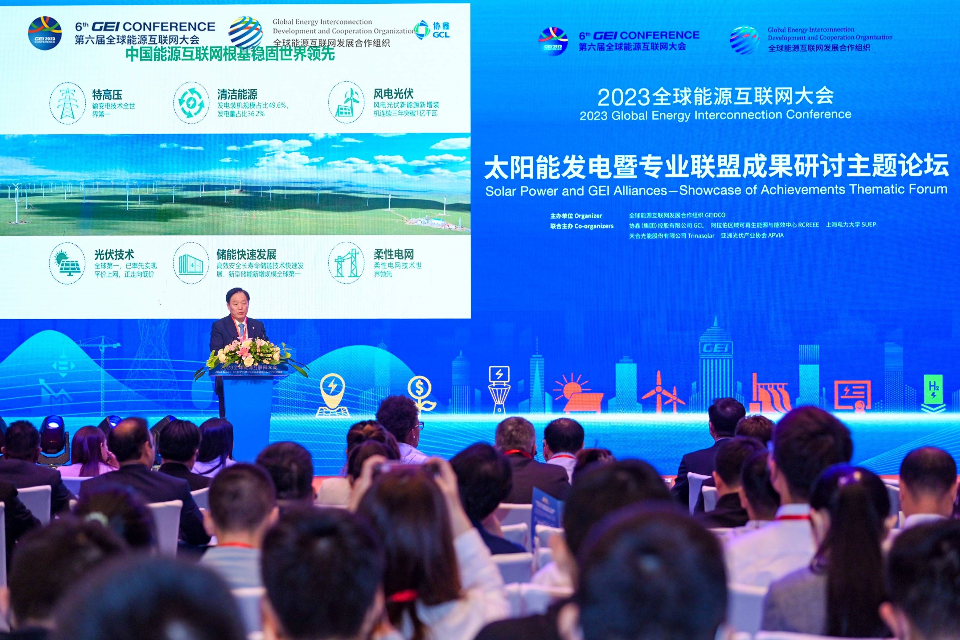 9月27日,以“全球能源互联网与新型能源体系”为主题的2023全球能源互联网大会在北京举行。由协鑫集团联合主办的“太阳能发电暨专业联盟成果研讨主题论坛”作为本届大会的平行论坛之一,邀请政府部门、专家学者及国内外知名企业家等齐聚一堂,围绕产业发展、政策推动和技术创新等进行交流探讨。全球绿色能源理事会主席、亚洲光伏产业协会主席、协鑫集团董事长朱共山出席本次论坛,并发表以《全球能源互联网赋能光伏产业大发展》为主题的演讲。