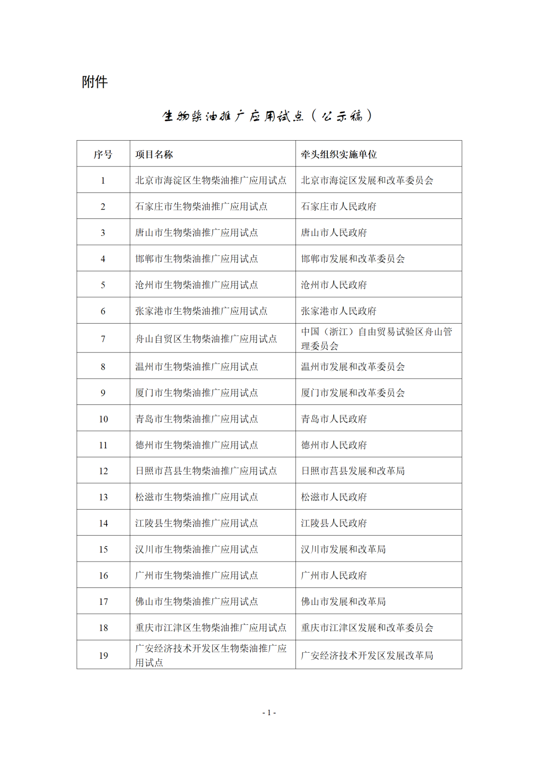国家能源局综合司关于公示生物柴油推广应用试点的通知