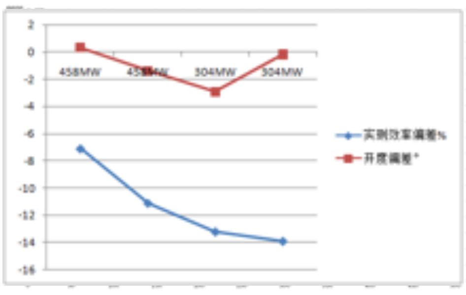 实测与曲线对应效率偏差超过5%,A侧、B侧效率最大偏低13.2%、13.9%。