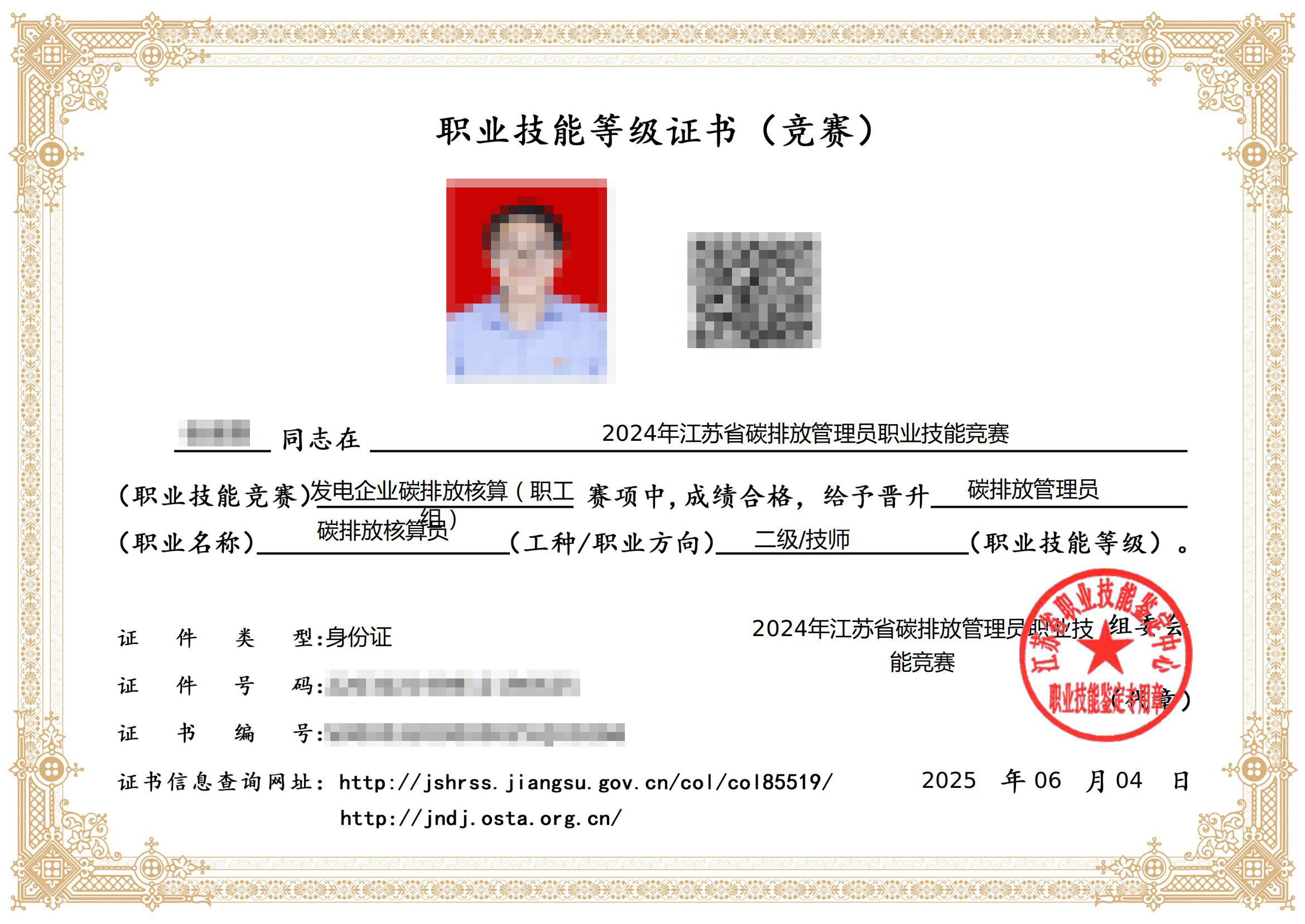 经省人社部门认定,8人荣获“碳排放管理员(碳排放核算员)技师证书”、16人荣获“碳排放管理员(碳排放核算员)高级技工证书”。