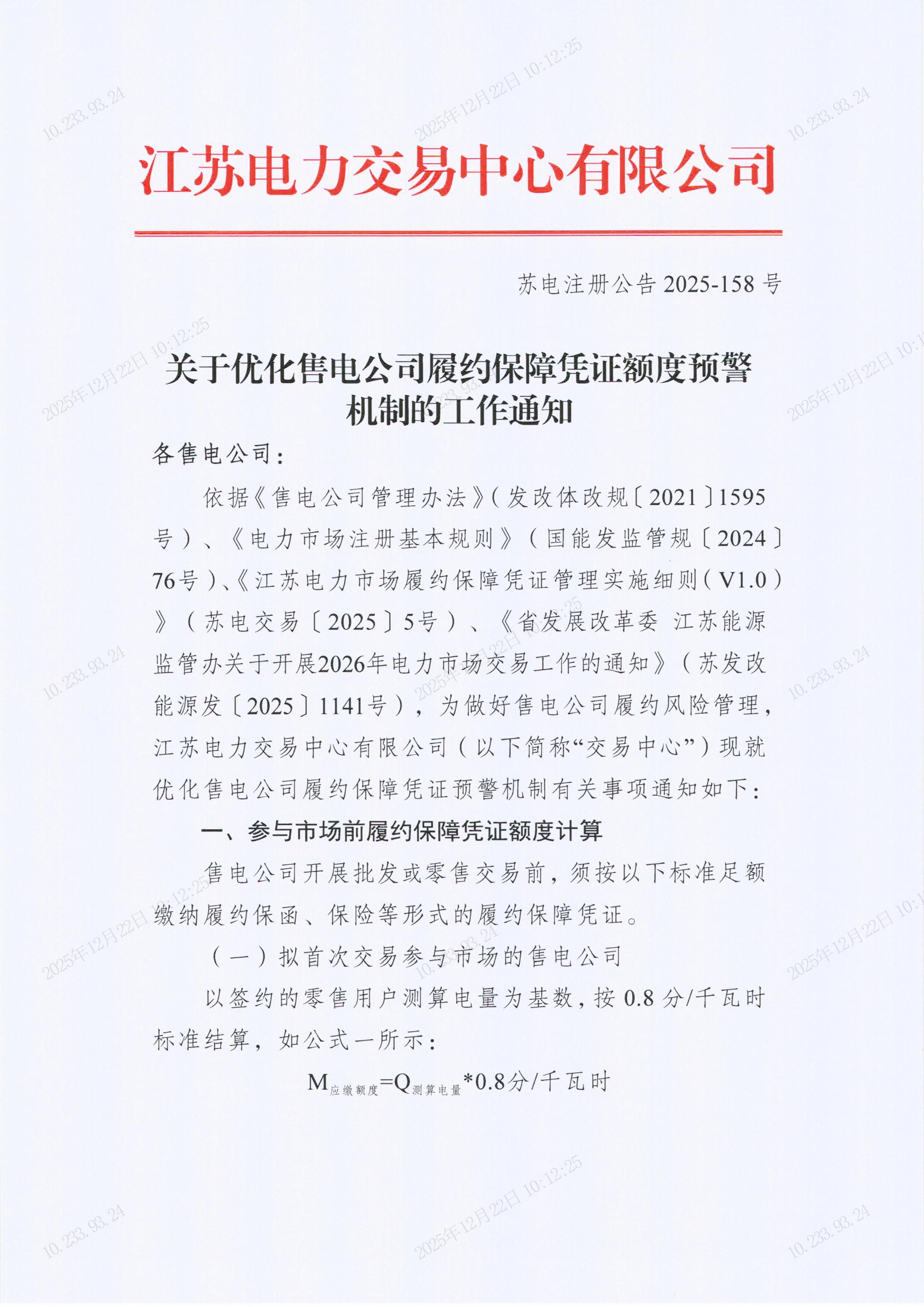 北极星电力市场网获悉,12月22日,江苏电力交易中心发布关于优化售电公司履约保障凭证额度预警机制的工作通知,虚拟电厂、分布式新能源聚合商等新型主体履约保障凭证额度预警机制参照售电公司执行。同时拥有售电公司、虚拟电厂、分布式新能源聚合商身份的经营主体,履约保障凭证额度能同时覆盖售电公司、虚拟电厂、聚合商等各类主体应缴纳履约保障凭证额度的,可无需拆分提交。