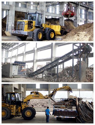 参观厂区时,负责生产一线的副总经理王国茂详细介绍了公司从德国进口的“打碎机”。据悉由于秸秆的热值较低,因此要达到发电能量,通常要添加15%-20%的煤。但华晟使用建筑废木料代替煤炭,以增加秸秆热值。这台“打碎机”的作用就是对建筑垃圾中的可燃物进行破碎后掺烧,其热值在5000大卡左右。为了剔除其中残留的铁钉螺丝等,技术人员还动足脑筋,在传输带上装上了磁铁分离器。