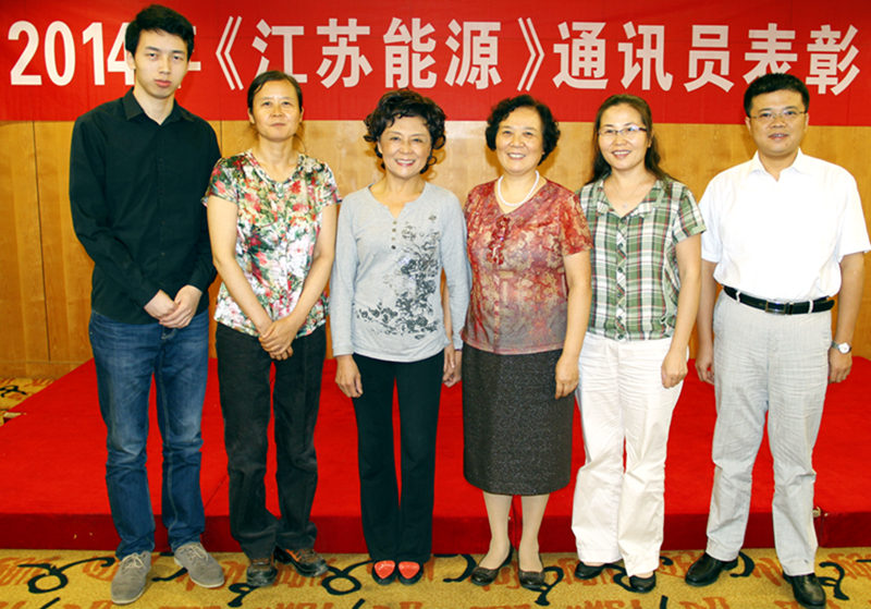 图示:协会副秘书长、《江苏能源》主编袁友芳(右3)与5位“优秀通讯员”合影